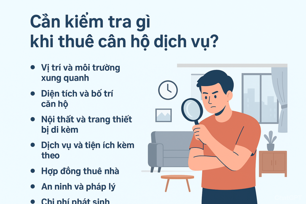 Khi thuê căn hộ dịch vụ, người thuê nên dành thời gian kiểm tra từ vị trí, nội thất, dịch vụ đi kèm đến hợp đồng và pháp lý. Điều này không chỉ giúp bạn chọn được nơi ở ưng ý mà còn tránh được những tranh chấp hay chi phí phát sinh không đáng có trong quá trình thuê.